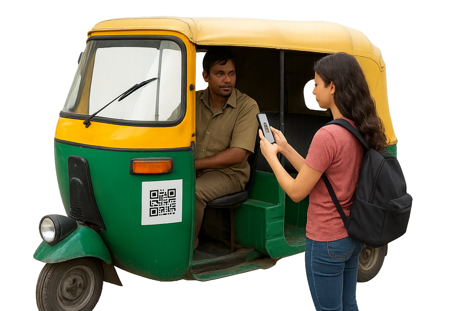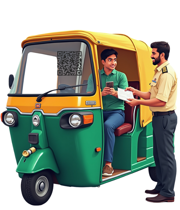 Scan the QR code on the auto to verify driver details. Get instant access to registration and credentials.